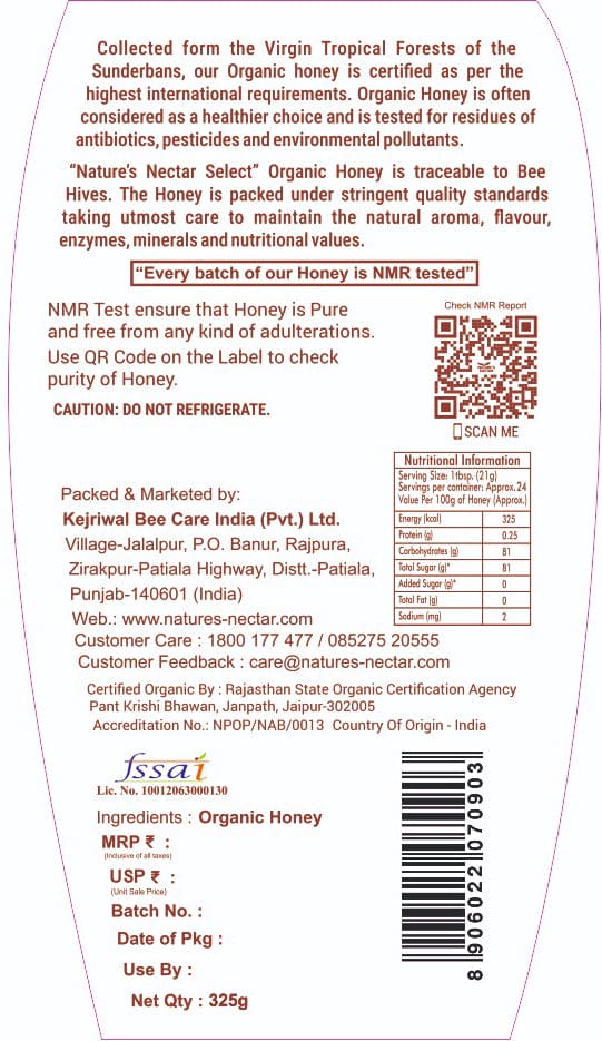 Pure, healthy Organic Honey is the pride of Nature's Nectar. This mineral-rich, raw, unprocessed honey is hand-harvested from the pristine tropical forests of Sundarbans and meets all international standards. Nature's Nectar Select Organic Honey is rigorously tested for traces of antibiotics, pesticides, and environmental contaminants. Our natural honey undergoes stringent packing standards to preserve its unique flavor, enzymes and nutritional values.
